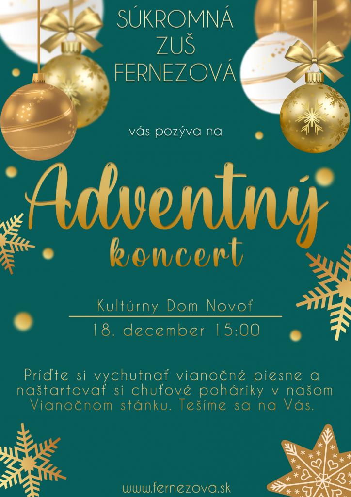 Súkromná ZUŠ Fernezová, Vás srdečne pozýva na adventný koncert vianočných piesní,ktorý sa uskutoční dňa 18. decembra 2022 v KD Novoť
