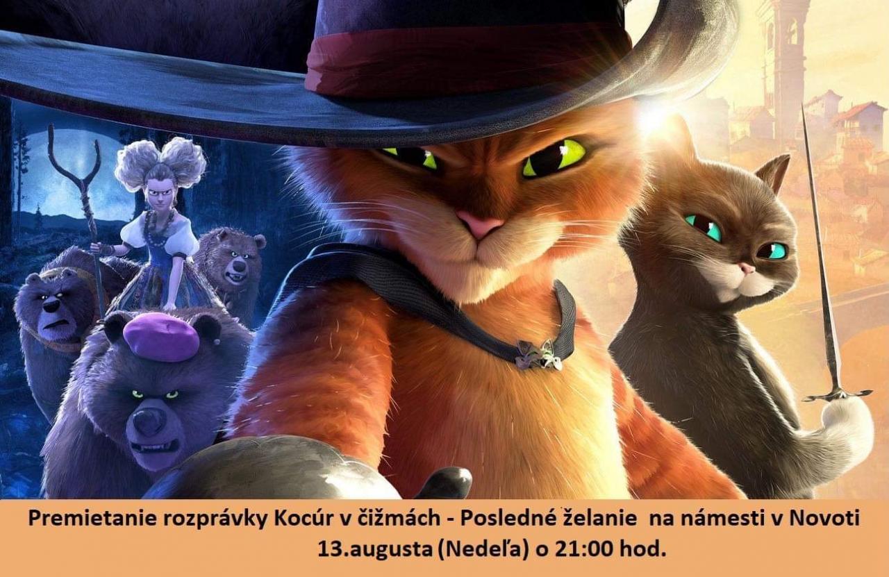 Pozývame Vás na premietanie letného kina, Kocúr v čižmách - Posledné želanie, ktoré sa uskutoční v nedeľu 13. augusta 2023 o 21:00 hod. Tešíme sa na Vašu účasť.
