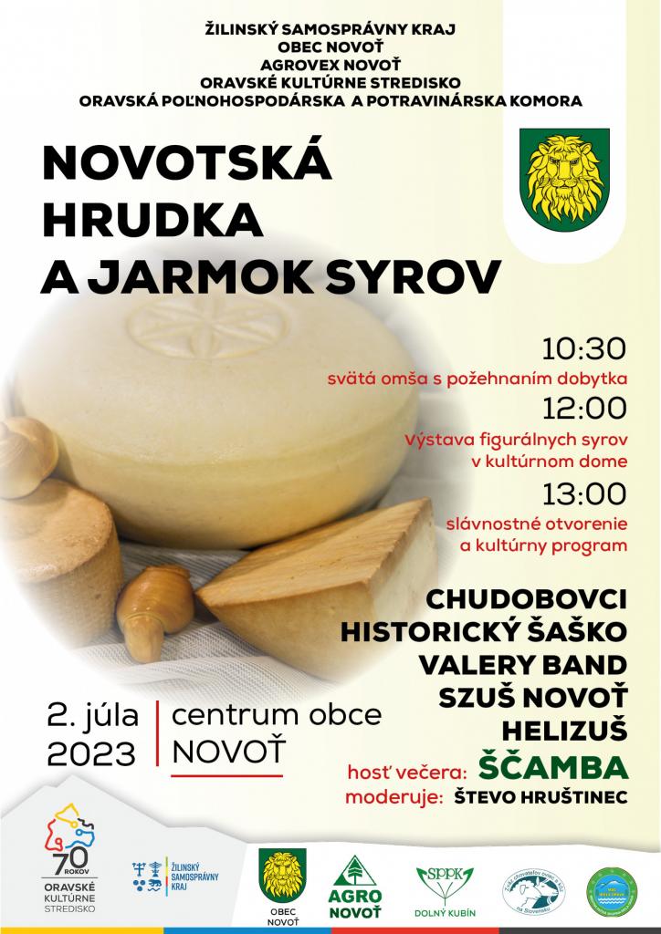 Pozývame Vás na ďalší ročník Novotskej hrudky, ktorá sa uskutoční 2.7.2023 (nedeľa) so začiatom o 10:30 v rímskokatolíckom kostole a pokračovať bude požehnaním dobytka v centre obce. Pripravená bude už tradične výstava figurálnych syrov v priestoroch KD a ochutnávka syra. Kultúrny program bude otvorený o 13:00 hod.
