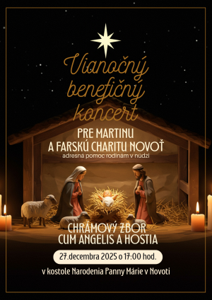 Srdečne Vás pozývame na Vianočný benefičný koncert, ktorý sa bude konať v sobotu 27. decembra o 17:00 v Kostole Narodenia Panny Márie. V programe sa môžete tešiť na vystúpenie miestneho chrámového zboru Cum Angelis a jeho hostí, hudobné talenty z našej obce.