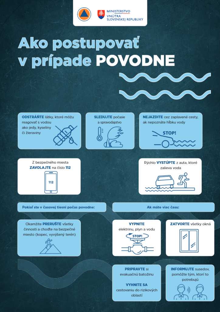 Informačné plagáty pre občanov s inštrukciami ako postupovať pri konkrétnych mimoriadnych udalostiach
