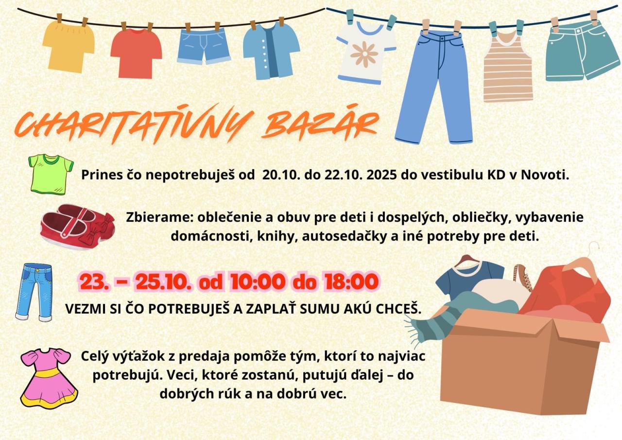 👕👖 CHARITATÍVNY BAZÁR V NOVOTI 👗🧸