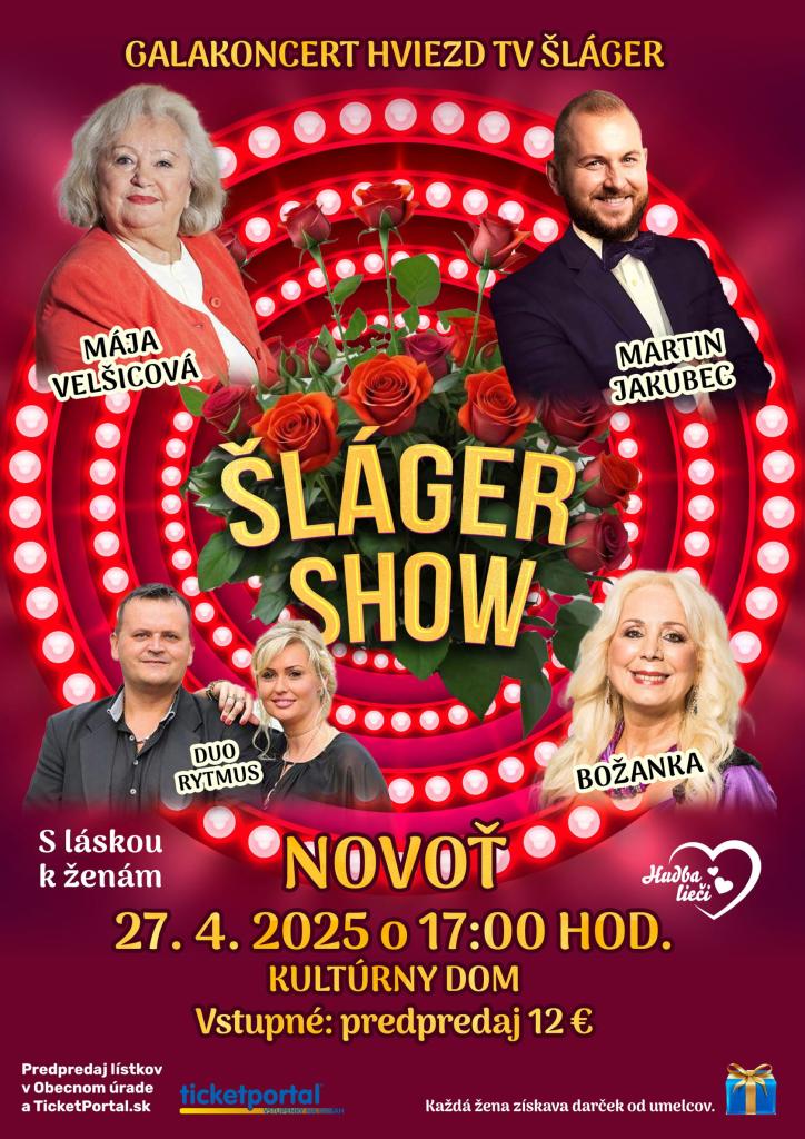 Príďte sa spoločne zabaviť s vynikajúcimi interpretmi z TV ŠLÁGER. Speváci pripravili pre Vás jedinečnú atmosféru, predstavia svoje najkrajšie hity a čakajú na Vás príjemné emócie radosti.