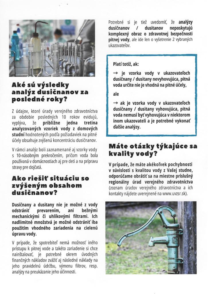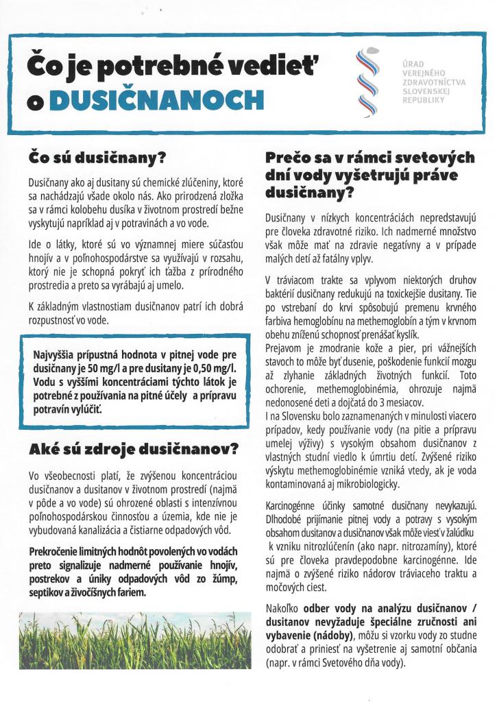 Dávame vám na vedomie, že RÚVZ so sídlom v Dolnom Kubíne poskytne všetkým záujemcom pri príležitosti SDV 2025 bezplatné orientačné laboratórne vyšetrenie vzoriek vody z individuálnych vodných zdrojov v ukazovateľoch dusičnany a dusitany ako aj odborné poradenstvo v čase od 8:00 – 12:00. Vzorky vody prineste v jednorazových