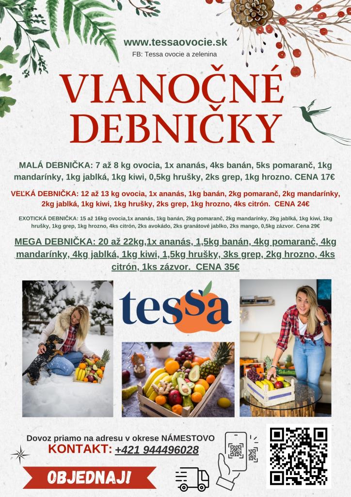 Tessa s radosťou oznamuje našim občanom, že CENY VŠETKÝCH DEBNIČIEK SA ZLACNELI O DVE EURÁ. VZHĽADOM NA POKLES CIEN URČITÉHO OVOCIA.
