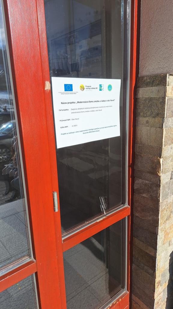 Cieľ projektu: Zlepšenie základných služieb prostredníctvom investície do modernizácie (rekonštrukcie) Domu smútku a nádeje v obci Novoť