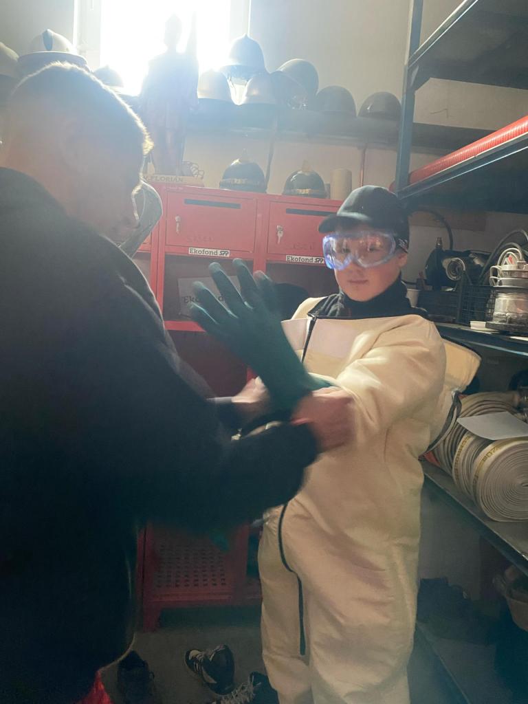 Členovia DHZO absolvovali odbornú prípravu - inštruktážne školenie. Následne získané vedomosti a znalosti posunuli na ďalších členov DHZO. Žiakov ZŠ Novoť a mládežníckych členov začínajúcej generácie dobrovoľných hasičov, formou prezentácie a prednášky správneho nasadenia ochrannej kombinézy ako aj simulovanej ukážky odchytu a postupu počas zásahu.