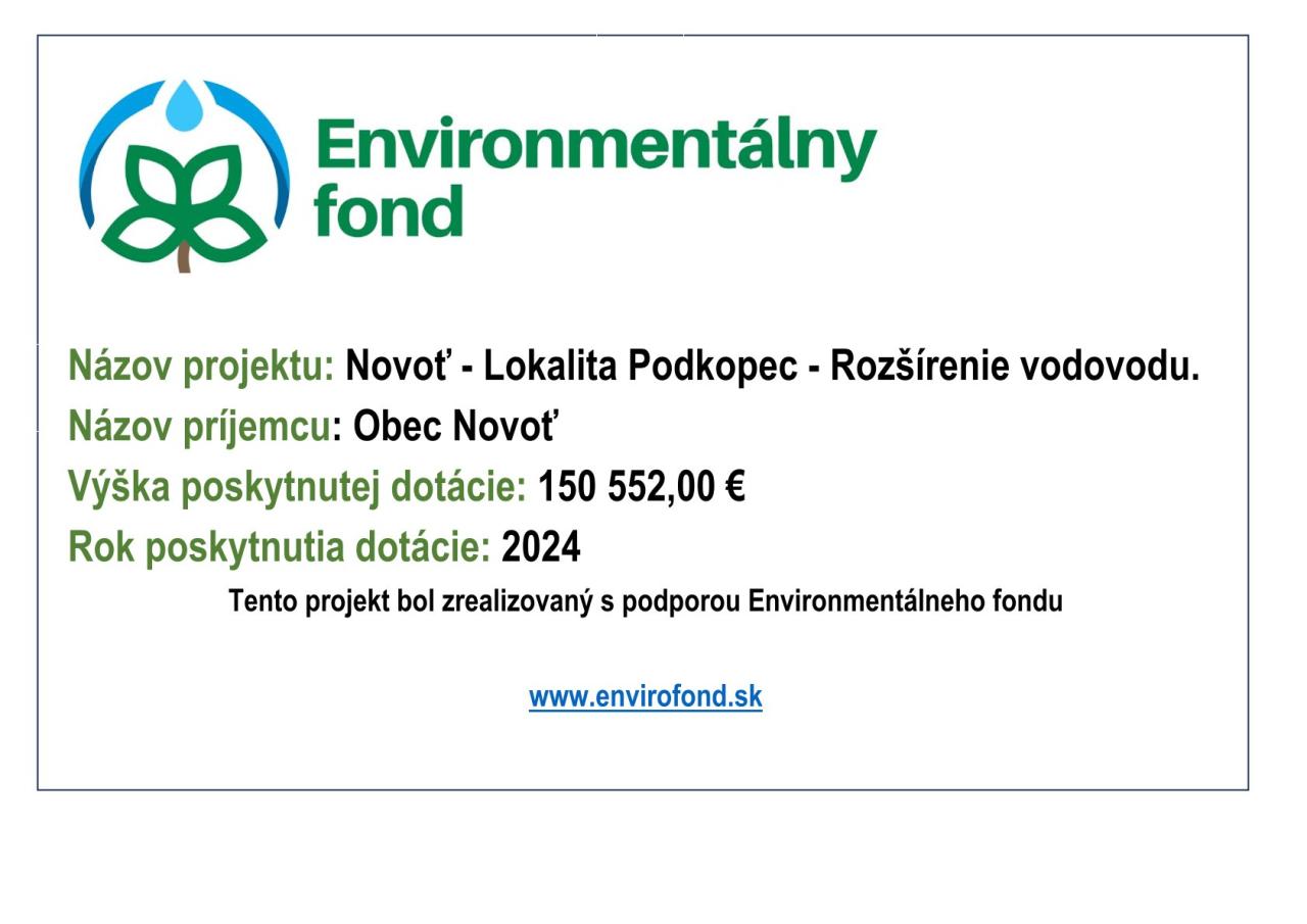 Názov projektu: Novoť - Lokalita Podkopec - Rozšírenie vodovodu.